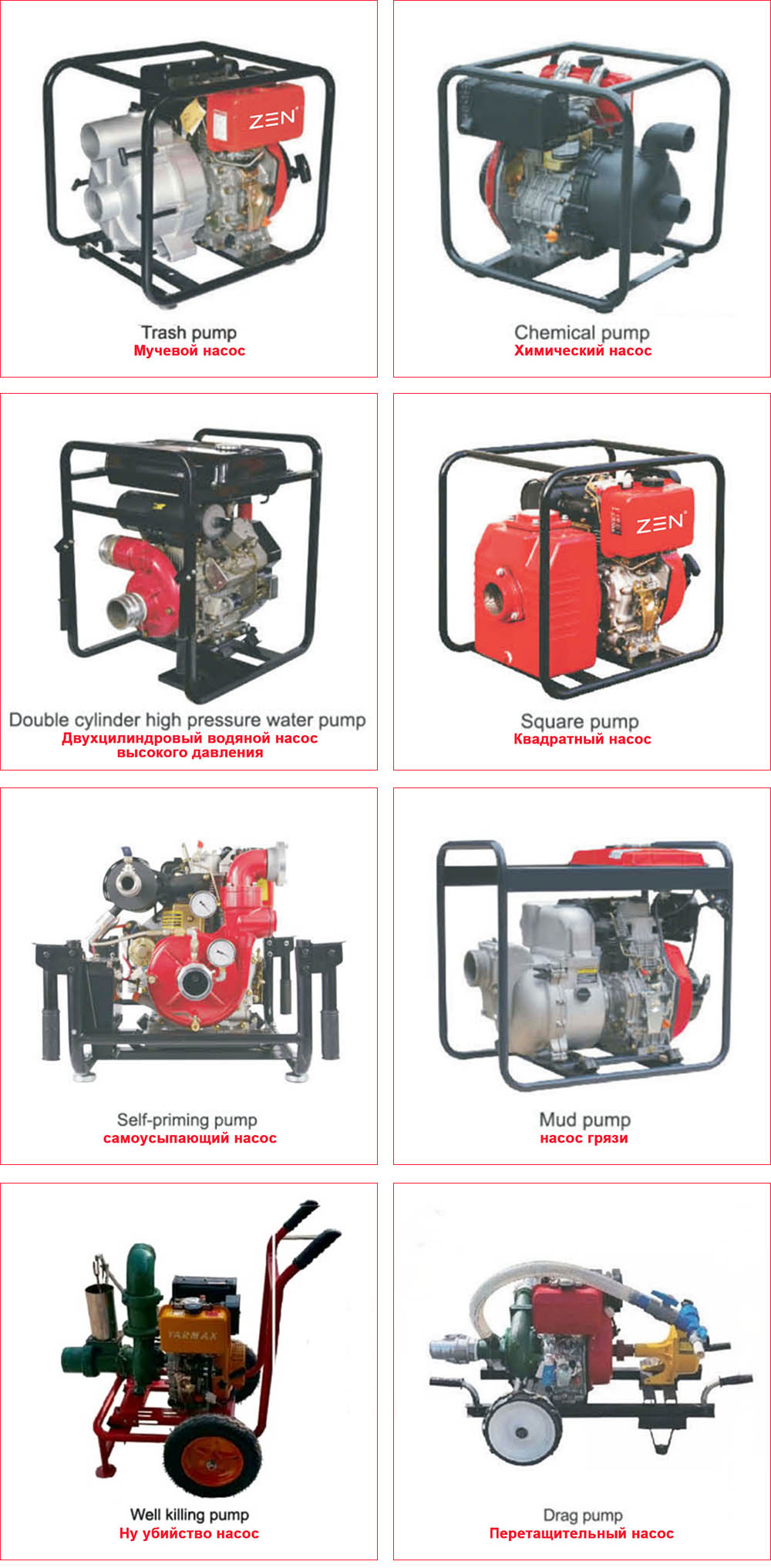 Высококачественная модель ZEN многотипный дизельный водяной насос оснащена надежными дизельными двигателями и включает в себя ряд специализированных моделей, таких как насосы для откачки мусора, химические насосы, грязевые насосы и другие, которые соответствуют различным потребностям на месте. Запуск любого насоса из этой серии многофункциональных дизельных водяных насосов прост; вам не придется проходить сложные настройки, даже если вы новичок, и управлять ими тоже просто — достаточно освоить базовые элементы управления, что экономит время, когда вы спешите.