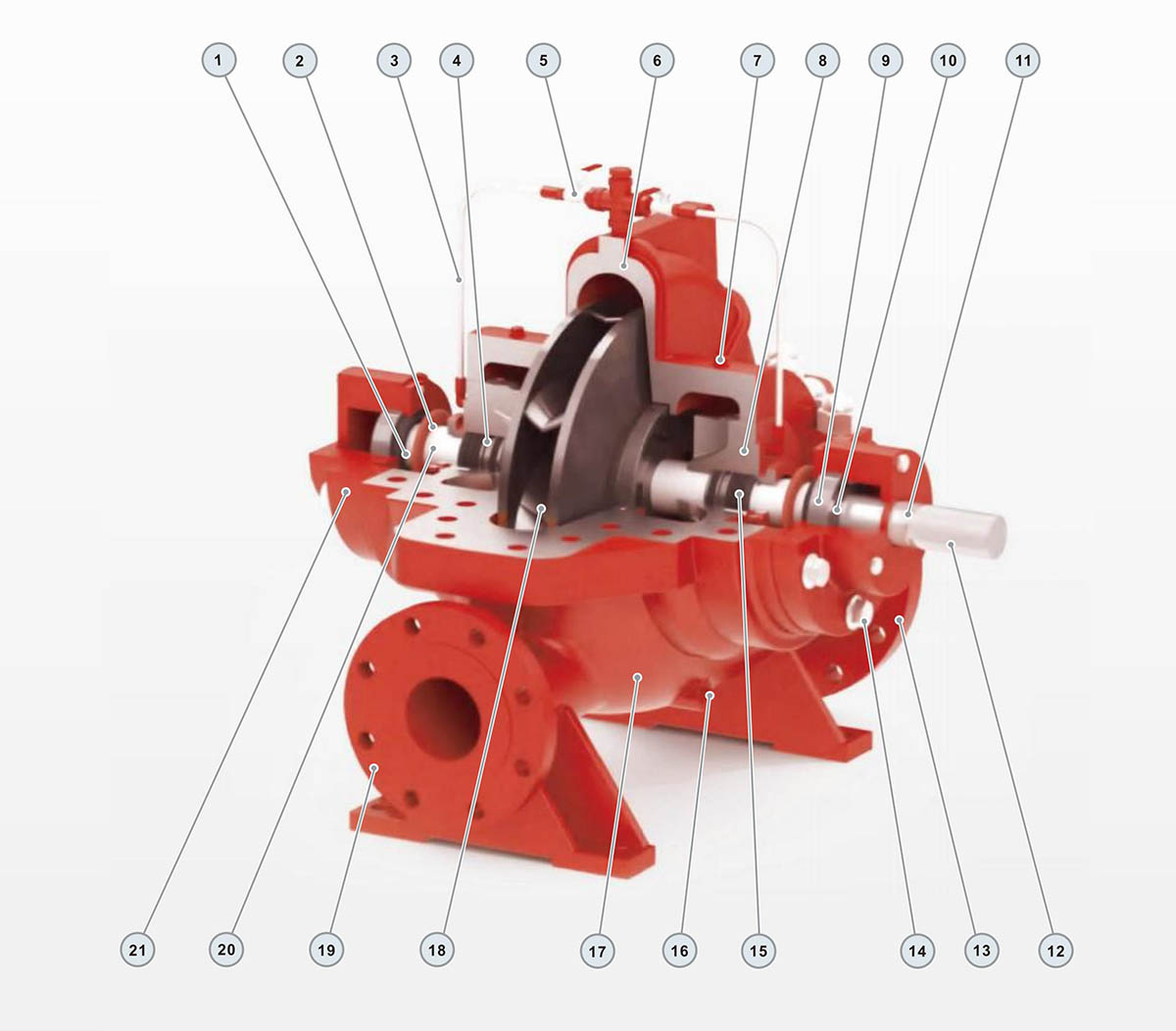 Высококачественные насосы ZEN Насосы SCM с двухсторонним всасыванием и разъемным корпусом стандартно поставляются с предварительно смазанными подшипниками качения, что обеспечивает герметичность на весь срок службы без необходимости обслуживания. Независимо от того, приводится ли насос в действие электродвигателем или дизельным двигателем, он демонстрирует долговременную стабильность, полностью отвечая требованиям критически важных применений, таких как пожаротушение и водоснабжение.