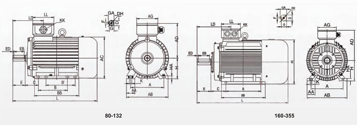 | YE3-315L1-4 | 160 | 220 | 1488 | 95.8 | 95.8 | 93.9 | 0.89 | 285 | 271 | 261 | 1027 | 2 | 2.2 | 7.1 | 92 | 1126 |