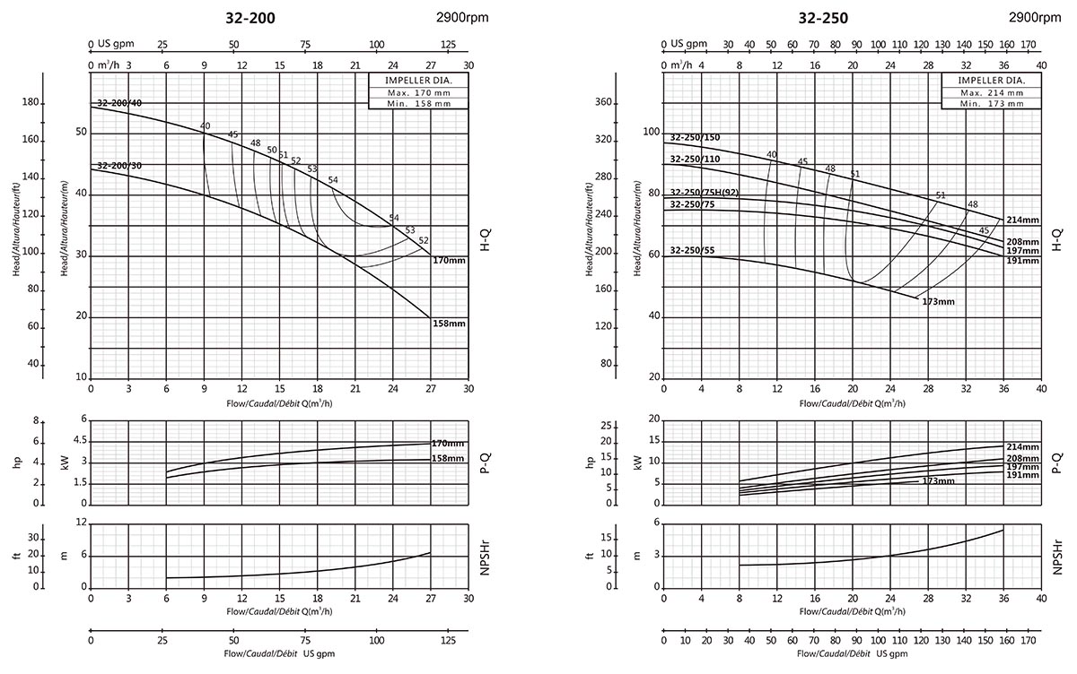 | XA 32-250/75 | 50x32 | 230 | 7.5 | 10 | 69.5 | 69 | 68.5 | 66 | 63 | 53 | - | - | - | - | - | - | - | - | - | - | - | - | - |
