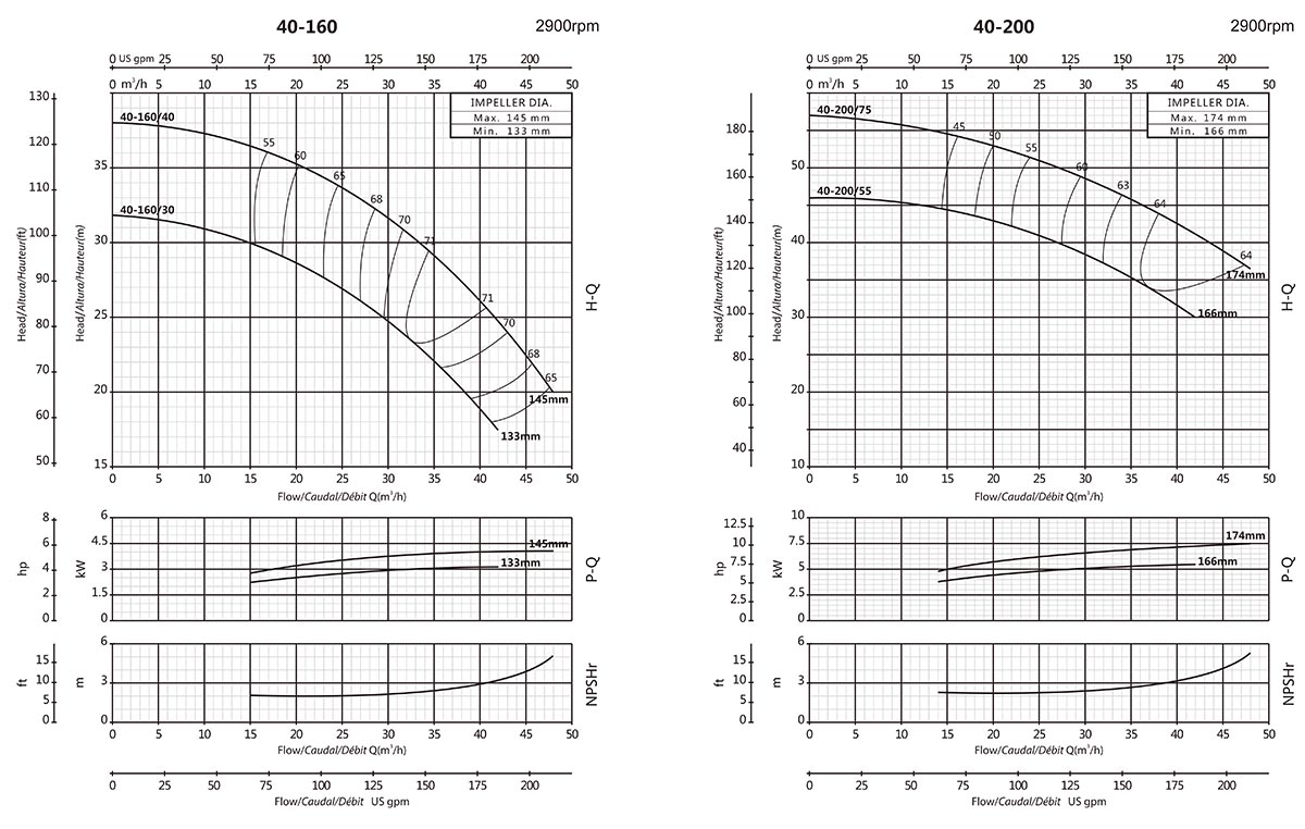 | XA40-160/40 | 65x40 | 170 | 4 | 5.5 | 38 | - | - | - | 36 | 34 | 33 | 28.5 | 25 | 20.1 | - | - | - | - | - | - | - | - | - |